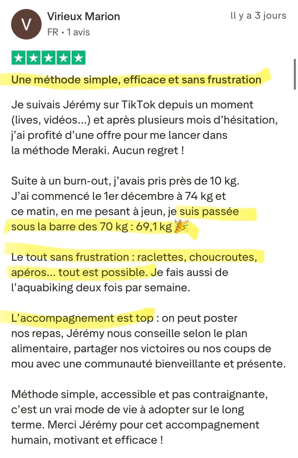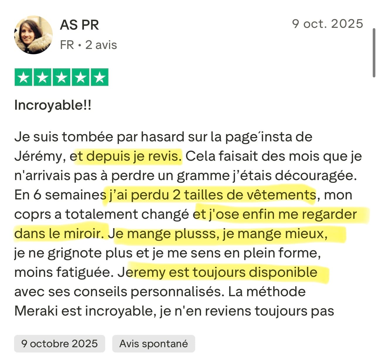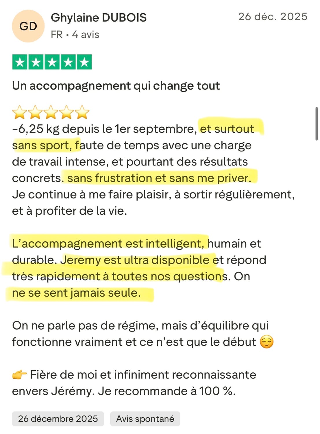Tu investis dans une méthode que tu peux enfin tenir, avec un cadre, un accompagnement et Jérémy à tes côtés.